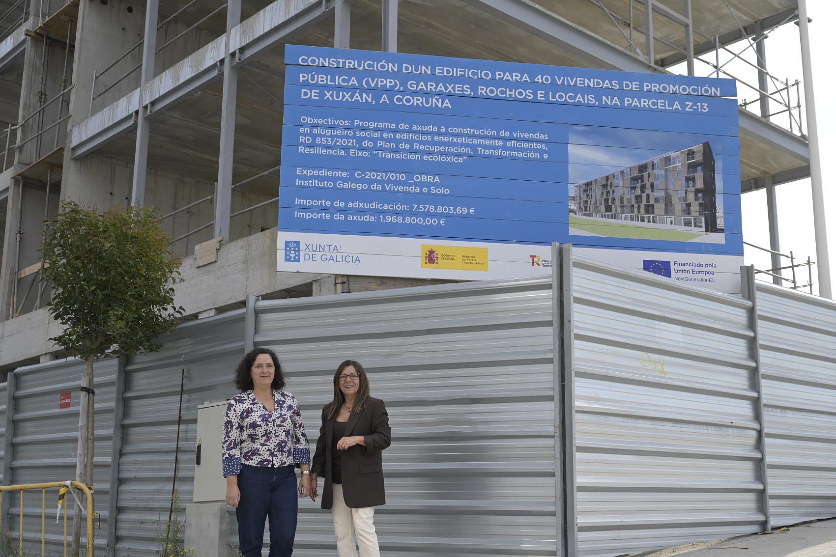 La delegada territorial de la Xunta en A Coruña, Belén do Campo, acompañada por la directora territorial de la Consellería de Vivenda e Planificación de Infraestruturas, Begoña Freire, visitó hoy el nuevo edificio que el Gobierno gallego está construyendo en el barrio de Xuxán, en la ciudad de A Coruña, donde anunció que el Ejecutivo autonómico reservará casi 14,8 millones de euros para el desarrollo de vivienda pública y protegida en la ciudad herculina en los presupuestos para el año 2026.