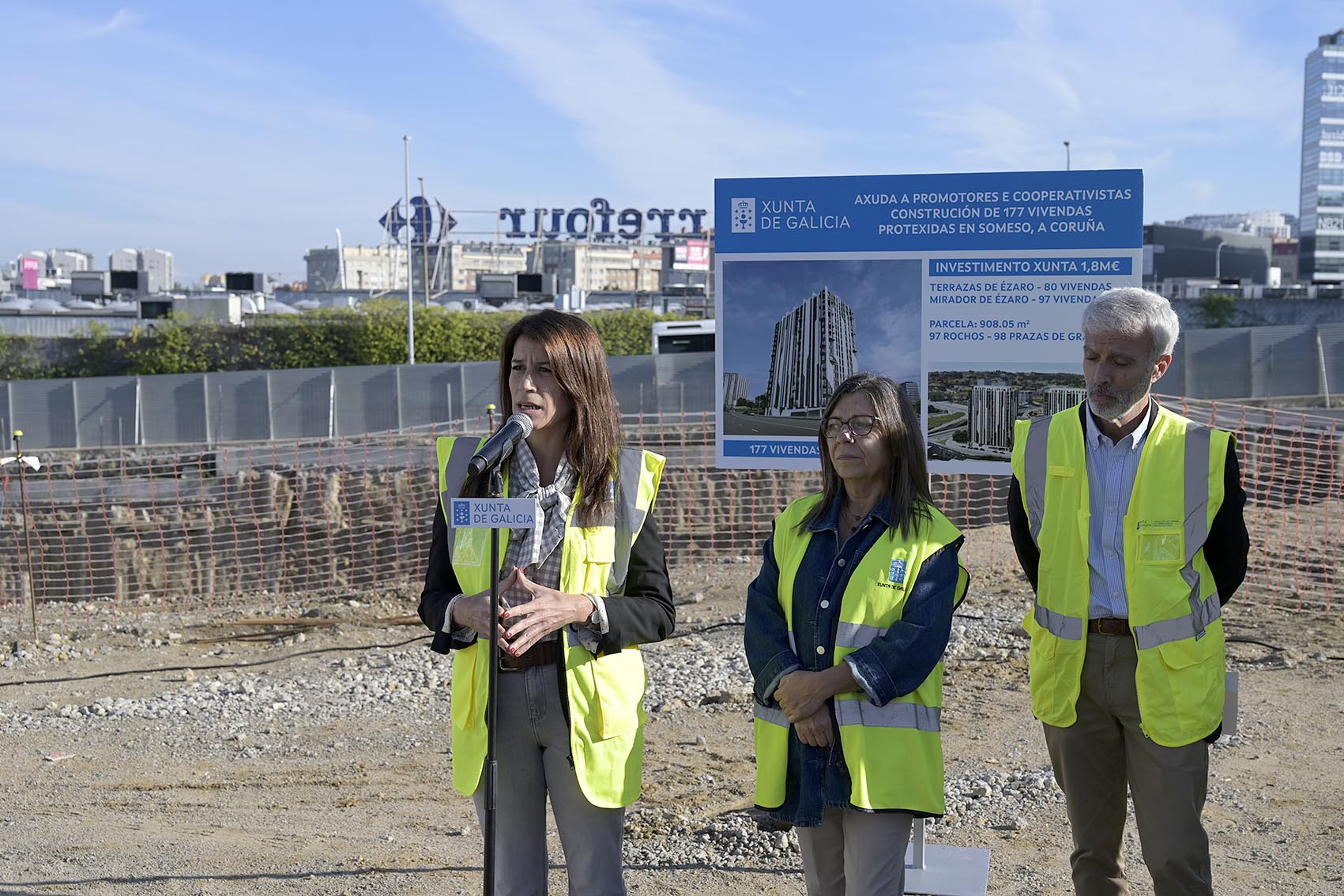 La Xunta concede ayudas a cooperativas y promotores por importe de 3,8 M€, de fondos propios, para la construcción de cerca de 400 nuevas viviendas protegidas. La conselleira de Vivenda e Planificación de Infraestruturas, María M. Allegue, visitó hoy dos parcelas en el barrio coruñés de Someso que acogerán 177 nuevas viviendas protegidas.