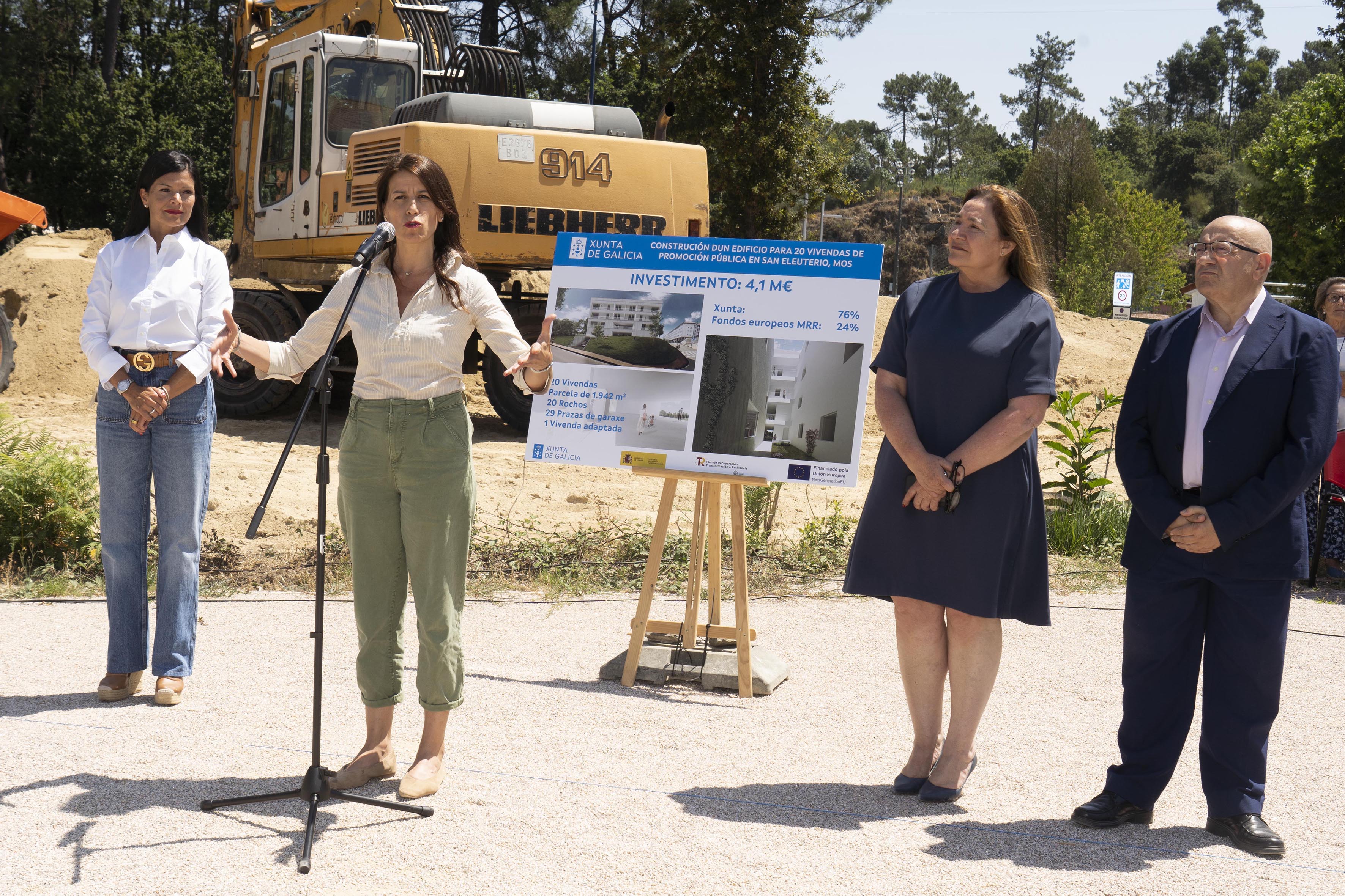 Precisamente la titular de Vivenda e Planificación de Infraestruturas visitó las obras de construcción del edificio para 20 viviendas de promoción pública en el barrio de San Eleuterio-Tameiga de la localidad, en una parcela cedida por el Ayuntamiento, que se prevé que esté finalizado en 2026.