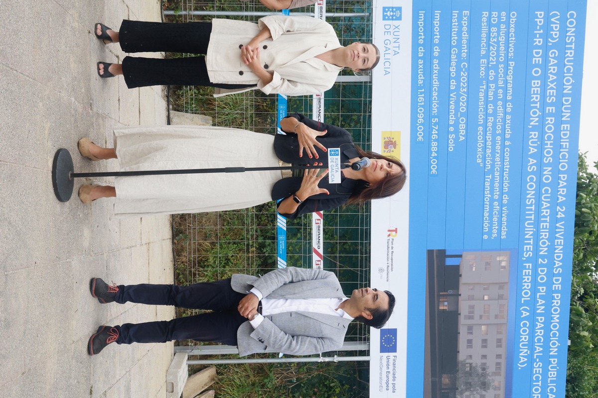 La Xunta viene de dar cuenta del inicio de las obras de un inmueble de 24 viviendas de promoción pública en Ferrol. La conselleira de Vivenda e Planificación de Infraestructuras, María M. Allegue, visitó la parcela que albergará el inmueble, en el barrio de O Bertón. Los hogares resultantes formarán parte del parque público destinado a alquiler accesible y se destinarán, por lo menos un 40%, a menores de 36 años. La previsión es que las obras finalicen en el último trimestre del 2026.