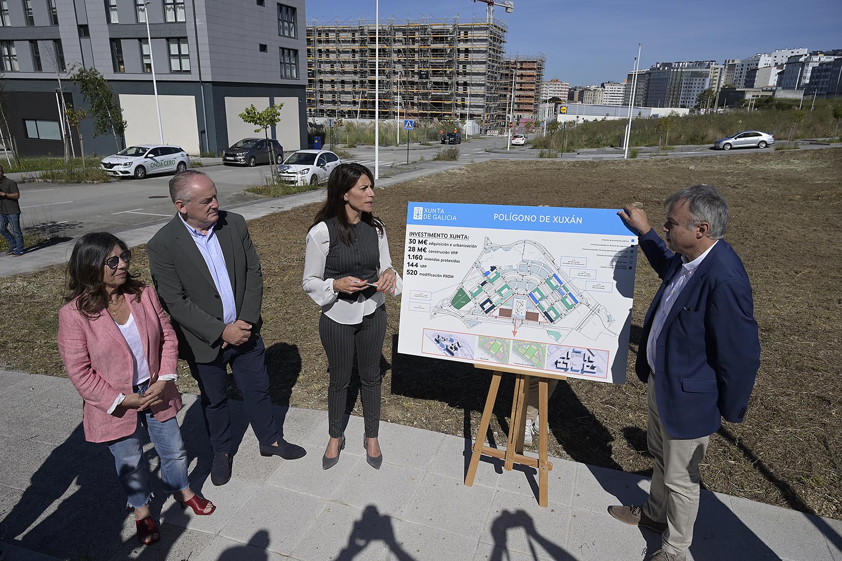 M. Allegue quiso destacar que dentro de este conjunto de 1.600 figuran 256 viviendas protegidas que levantarán dos cooperativas adjudicatarias de las 5 parcelas ofertadas por la Xunta en derecho de superficie por 50 y 60 años. Además, están previstas otras 520 viviendas en las parcelas para las que se solicitó la modificación del PGOM al Ayuntamiento y en ellas también hay previsión de construir vivienda de promoción pública.