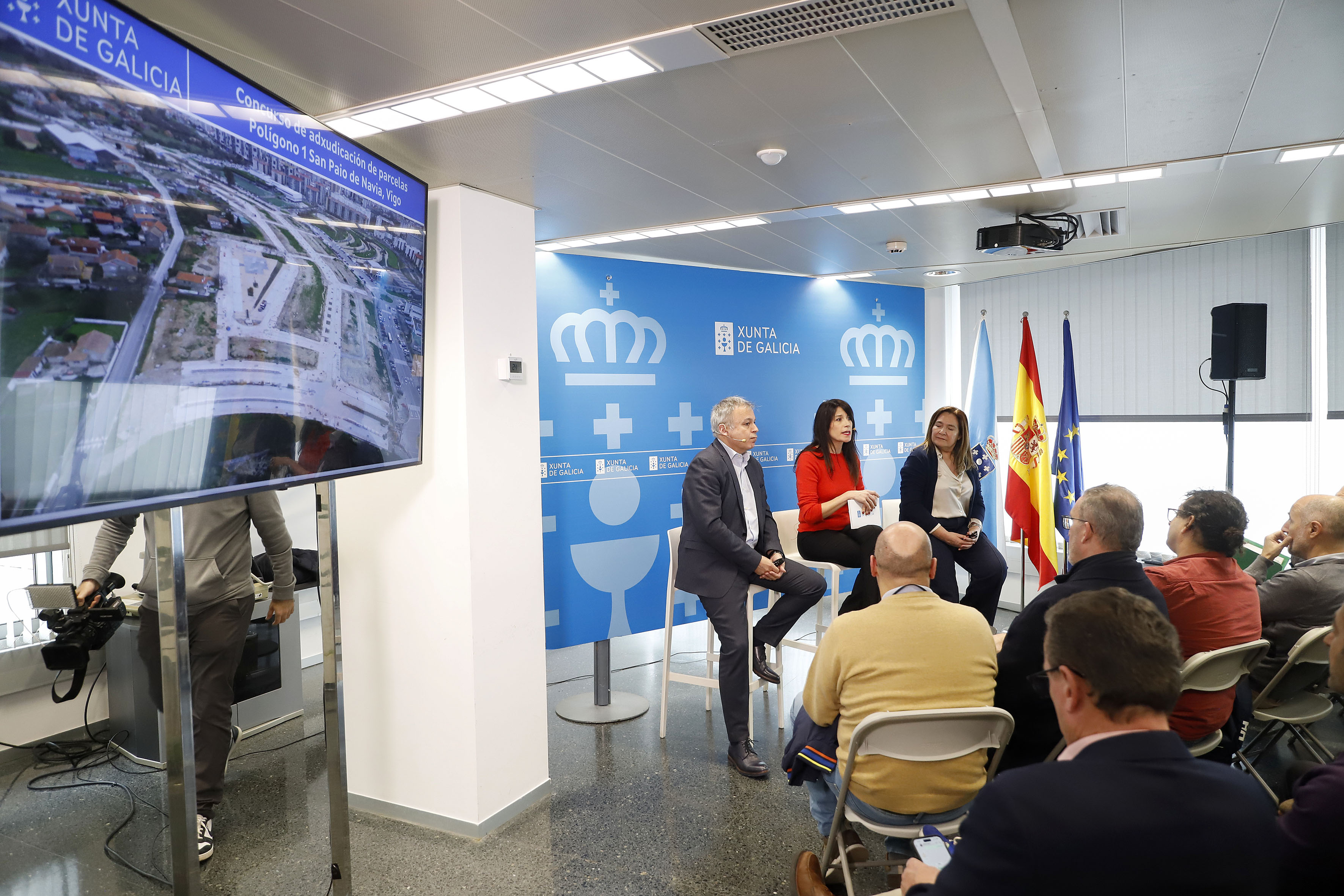A conselleira de Vivenda e Planificación de Infraestruturas, María M. Allegue, xunto á delegada territorial da Xunta en Vigo, Ana Ortiz, e o secretario xeral de Vivenda e Urbanismo, Heriberto García Porto, mantivo un encontro con medio centenar de promotores e cooperativistas no Edificio Administrativo da Xunta na cidade olívica. A conselleira deu conta do concurso de 82 parcelas do polígono 1 de San Paio de Navia, para 153 vivendas protexidas. Allegue agradeceu a asistencia á cita, “fundamental para a cooperación entre as administracións e o sector” e invitou aos asistentes a colaborar co Goberno galego man a man de cara a “atallar o problema da vivenda”.