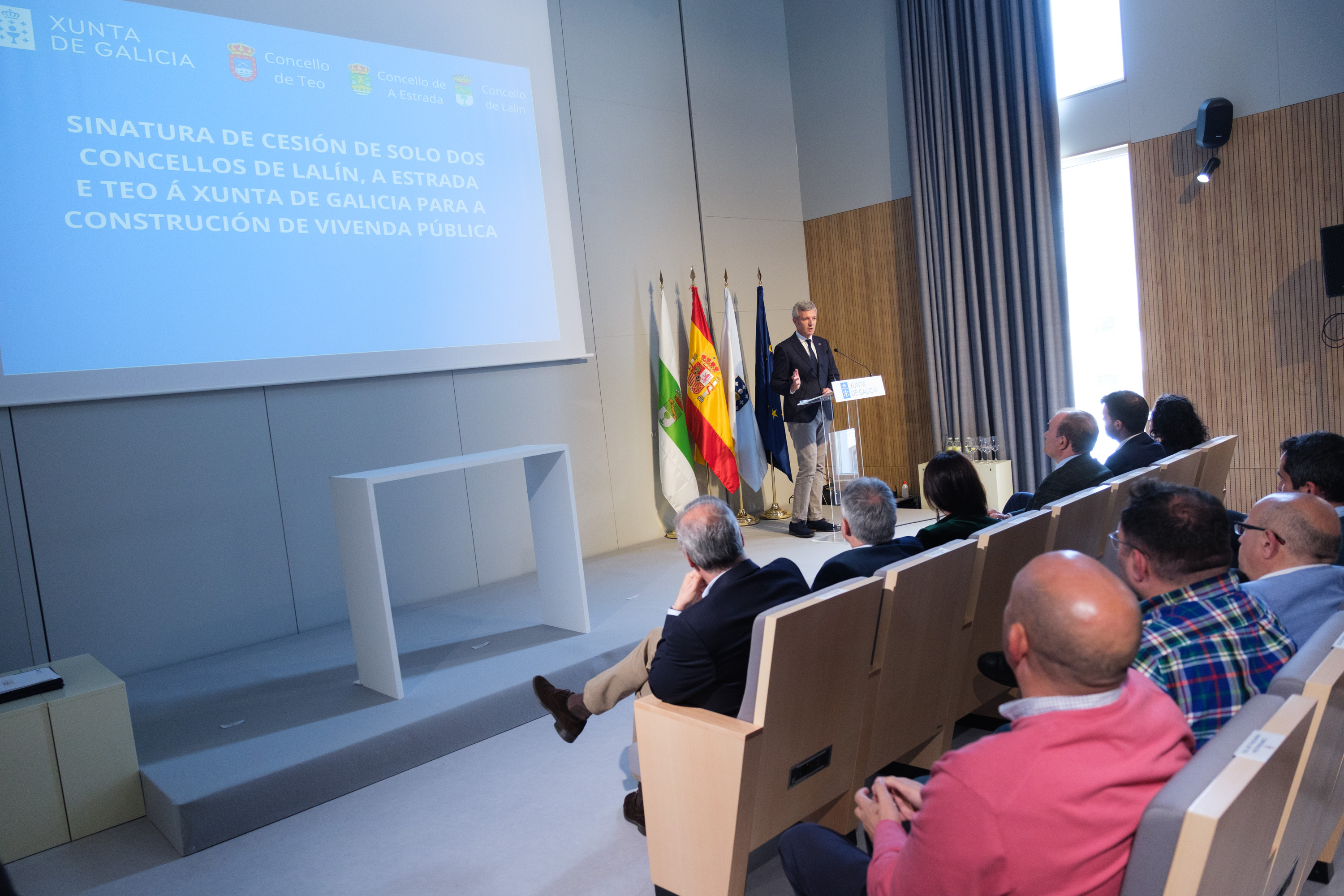 O presidente da Xunta, Alfonso Rueda, asinou hoxe un acordo de colaboración cos concellos de Lalín, Teo e A Estrada que permitirá a cesión gratuíta de parcelas nas devanditas localidades para a construción de inmobles de promoción pública. “Temos que ofrecer solucións reais ao problema da vivenda e iso pasa por cooperar, planificar, priorizar os recursos para este eido e actuar”, indicou.