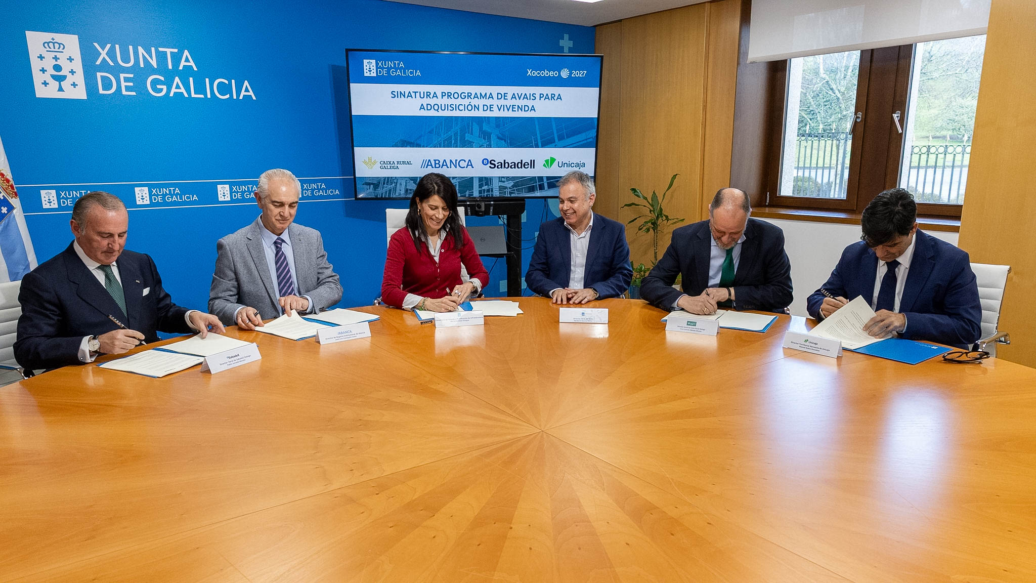 En concreto, o acordo de colaboración foi asinado pola conselleira con Pablo Junceda Moreno, director xeral de SabadellGallego e director xeral adxunto de Banco Sabadell; José Lino Comesaña Calvo, director de Negocio Institucional de Abanca en Galicia, España Norte e Portugal; Jesús Antonio Méndez Álvarez-Cedrón, director xeral de Caixa Rural Galega e Manuel Rubio González, director territorial Noroeste de Unicaja.