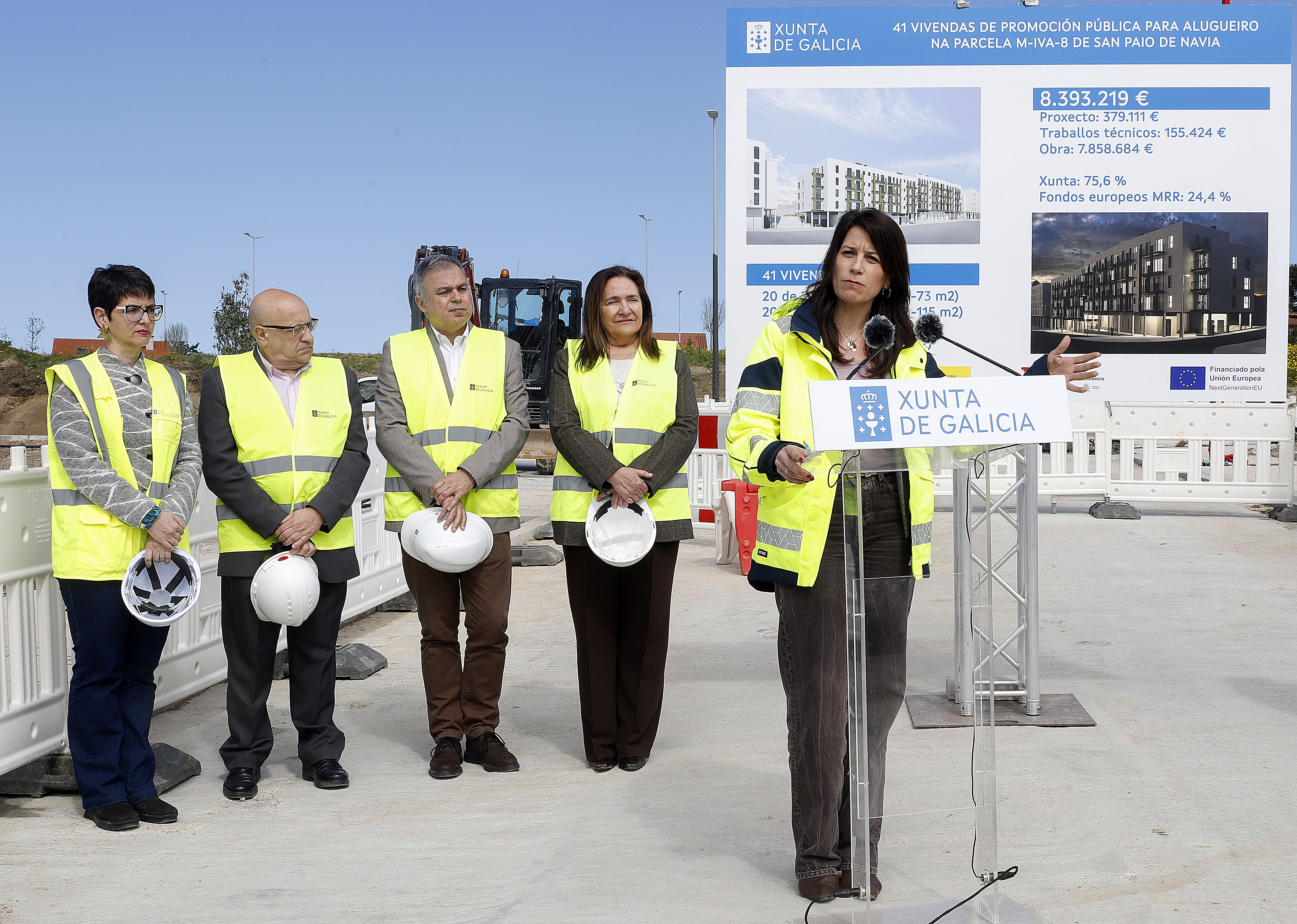 A conselleira de Vivenda e Planificación de Infraestruturas, María M. Allegue, xunto coa delegada territorial da Xunta en Vigo, Ana Ortiz, anunciou hoxe o inicio das obras dun novo inmoble no barrio vigués de Navia, para 41 vivendas protexidas. O investimento ascende a máis de 8,3M€, dos que un 24,4% son fondos europeos. O edificio atópase no Polígono 1, e disporá de 20 vivendas de 2 dormitorios, 20 de 3 e 1 de 4 estancias.