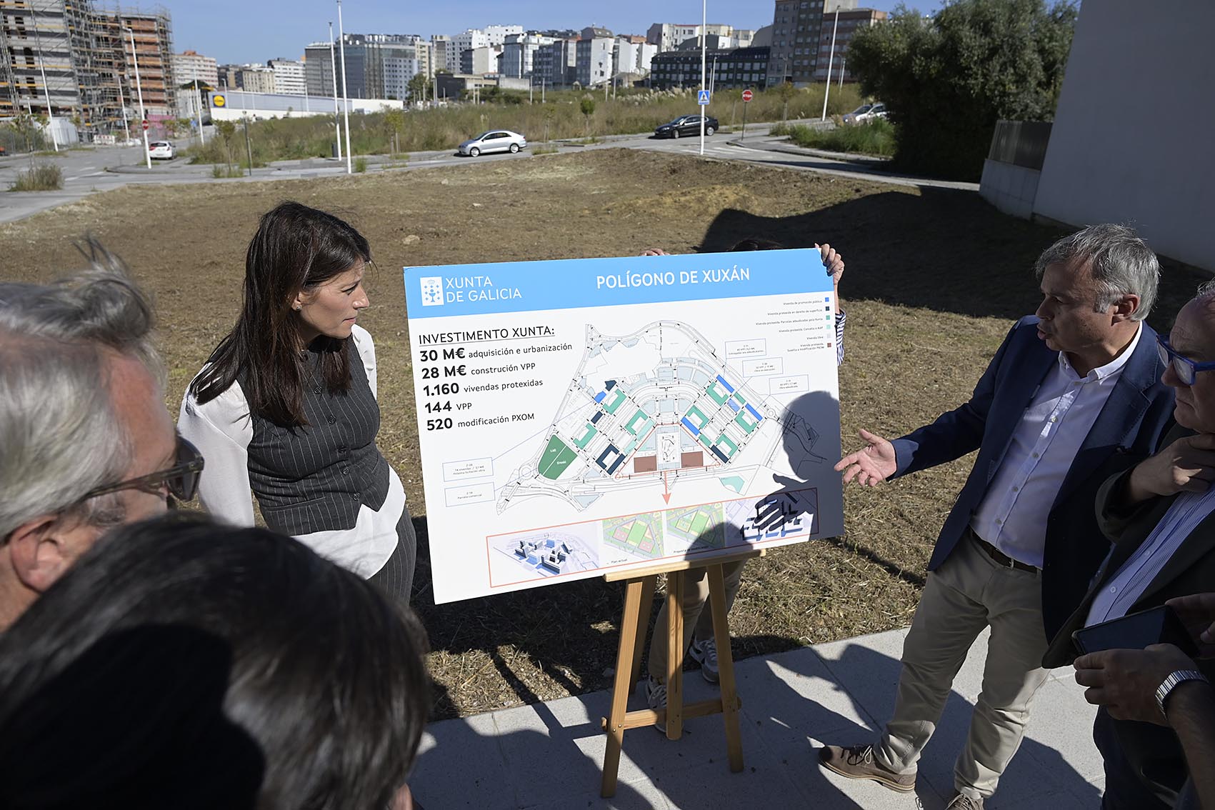 A conselleira subliñou o compromiso da Xunta para duplicar nesta lexislatura o número de vivendas públicas ata acadar as 8.000 e facilitar solo residencial para construír 25.000 vivendas en Galicia, 20.000 protexidas e 5.000 libres. A este último respecto, na área urbana da Coruña dentro desta estratexia prevese facilitar solo para 5.400 vivendas, máis de 4.300 protexidas.